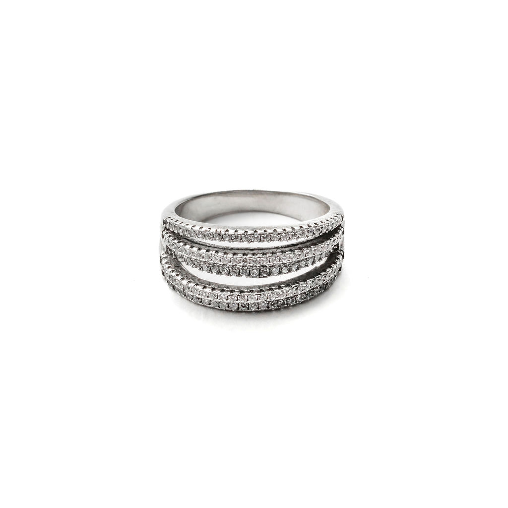 ANILLO CON LINEAS EN DESNIVEL Y CON INCUSTRACIONES DE ZIRCONIA