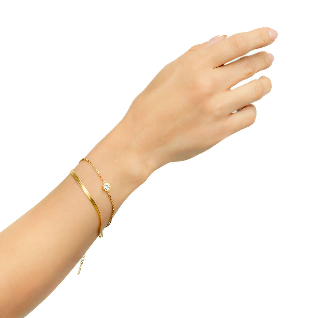 DOUBLE CHAIN BRACELET WITH ROUND ZIRCONIA